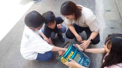 6年生の子どもたちが、昼休みに「堆肥のかきまぜ」をしています。6月の中旬に堆肥づくりを始めてから、1日も欠かさずに続けています。