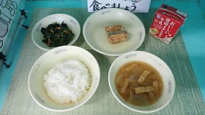 「さばのたつたあげ」は、ぱりぱりの衣とぎゅっと締まったぷりぷりの身がどちらもおいしい献立です。魚が苦手な子も、おいしくいただきました。今日の「みそ汁」には、京北地域で作られた赤みそが使われていました。地産地消の献立です。みそ汁には、じゃがいもが入っており、ほくほくの食感を楽しんでおいしくいただきました。