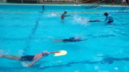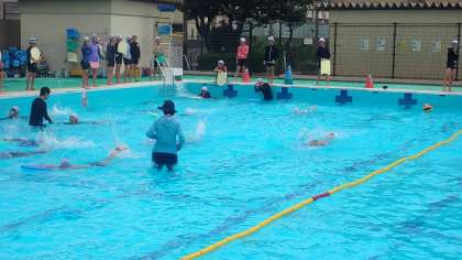 プールを縦に使って、泳ぎ方を確かめたり、距離やタイムに挑戦したりしています。水泳運動の学習も終盤に差し掛かってきました。検定でよい記録が出せるよう、残りの時間もがんばってほしいと思います。