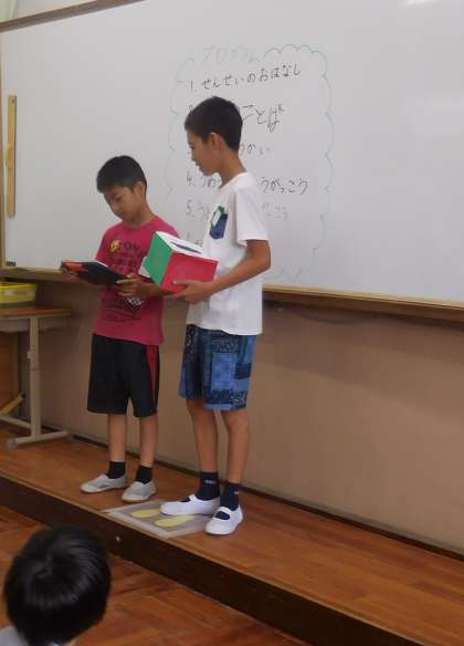 11日(木)、梅津北小学校の友達が梅津小学校に来て、交流をしました。イラスト当てクイズやじゃんけん大会などのゲームを通して、仲良くなりました。自己紹介では、「同じ2年生や。」「6年生やし、中学校で一緒になるかな。」などワクワクした面持ちで、聞いていました。