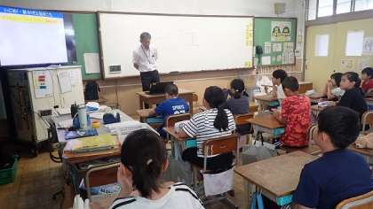 「心にブレーキ」というテーマで授業をしていただき、資料をもとに、やってはいけないことや何が正しいのかについて考えることができました。子どもたちは、真剣な表情で話を聞いたり考えたりしていました。