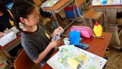 完成した作品は、家庭に持ち帰ります。ぜひご家庭でも一緒に遊んで、工夫したところを聞いてください。