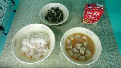 「高野どうふのそぼろ煮」は、うすくちしょうゆとさとうで味付けをした高野どうふと、とりひき肉やたまねぎ、にんじんの入ったそぼろをじっくり煮込んで作ります。かたくり粉が入っているので適度なとろみがあり、高野どうふとそぼろが絡んでとてもおいしくいただくことができました。