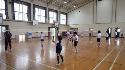 夏休み2日目です。今日は、部活動バドミントンの子どもたちが練習をしました。