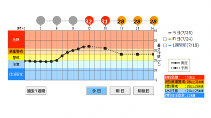 本日も京都市に熱中症警戒アラートが出され、運動場における暑さ指数(WBGT)が【危険領域】になっているため、午後の運動場での開放を中止します。午後は運動場で遊ぶことができませんので、子どもたちにお伝えください。