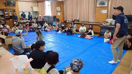 7月28日(日)に、梅津少年補導主催の行事「少年補導からの挑戦状2 親子ふれあい竹水鉄砲づくり」が行われ、約25名ほどの子どもたちが参加をしました。
