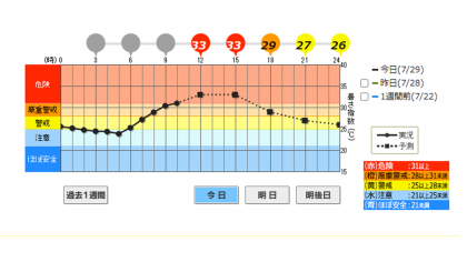 本日も京都市に熱中症警戒アラートが出され、午前10時の時点で運動場における暑さ指数(WBGT)が【危険領域】になっているため、運動場の開放を中止します。今日は運動場で遊ぶことができませんので、子どもたちにお伝えください。