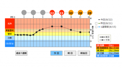 本日も京都府に熱中症警戒アラートが出されています。9時50分の運動場における暑さ指数(WBGT)がすでに【危険領域】となっているため、本日の運動場開放を中止します。今日は運動場で遊ぶことができませんので、子どもたちにお伝えください。