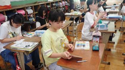 4年生は、夏休みの自由研究の作品を紹介するカードを書いていました。見ているだけでわくわくするような力作がたくさんあります。みんなで見合いっこをするのが楽しみですね。