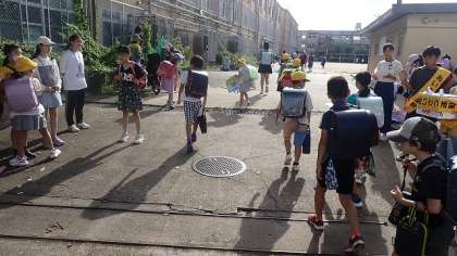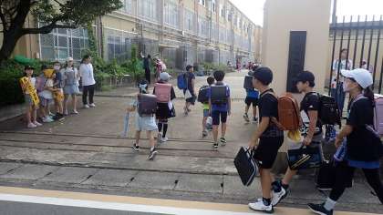 登校してくるみんなを、計画委員会の子どもたちがあいさつで迎えます。真夏の暑さよりはいくぶんましになりましたが、それでも暑い中計画委員会の子どもたちはがんばってくれています。