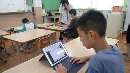 むくのき学級では、タブレットを使ってローマ字でのキーボード入力やアルファベットの順を確かめたりしています。