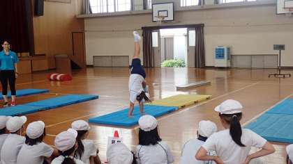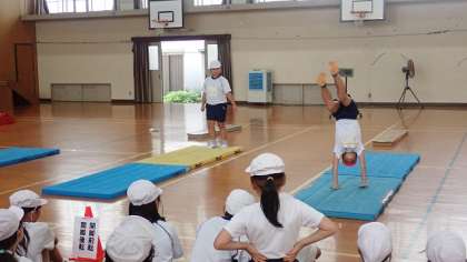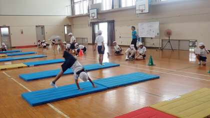 4年生は、体育の「マット運動」の学習をしています。