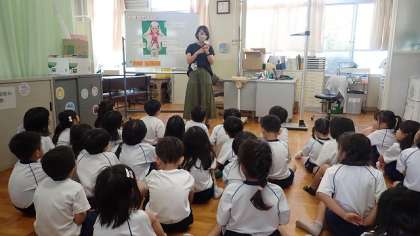 はじめに、養護の先生から「よいすいみん」についてのお話をしていただきました。睡眠をしっかりとることで「学習したことが身につく」「背が伸びる」「気持ちが落ち着く」などのよい影響がたくさんあることを教わりました。
