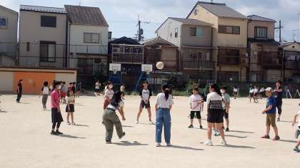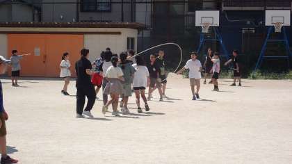 9月に入りましたが、昼休みや放課後は暑さ指数が危険域になることが多く、まだ暑さのいくぶんゆるやかな中間休みには、たくさんの子どもが遊んでいます。今日もバレーボールや大繩、おにごっこなどをして楽しんでいました。