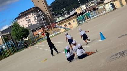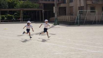 1学期に走ったときよりも走るのが上手になり、ゴールに向かって真っすぐ走ることができました。10月には運動会もあります。運動会でかっこよく走っている姿を見てもらうのが楽しみです。