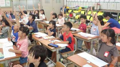 1年生は、算数の「なんじなんじはん」の学習をしています。