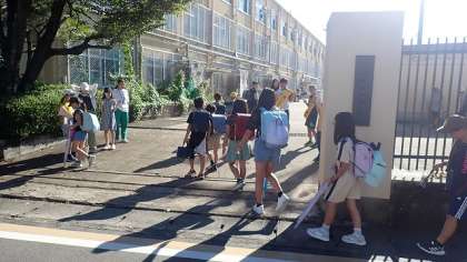 日差しも暑く、そこに立っているだけで汗がふき出してくる朝でしたが、元気よく挨拶をがんばっていました。