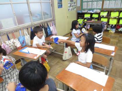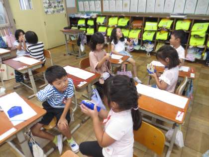 〇時と〇時半のよみ方を学習した後、友達と問題の出し合いっこをしました。