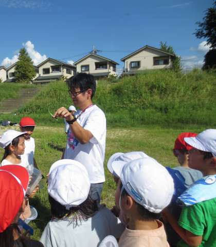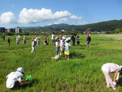 生活科の学習で、桂川の河川敷に虫取りに行きました。