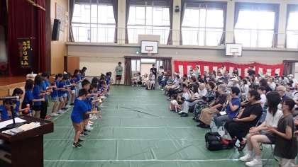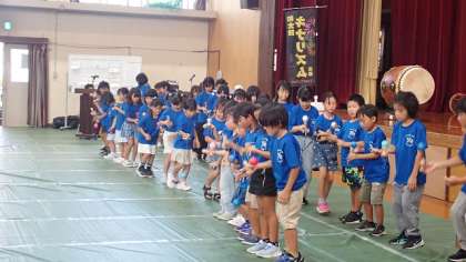 美空ひばりによって歌われた「リンゴの唄」と、子どもたちの間で人気の「Bling-Bang-Bang-Born」の曲に合わせていろいろな技を見せてくれました。みなさん、手拍子をしながら子どもたちのがんばっている様子を見てくださいました。