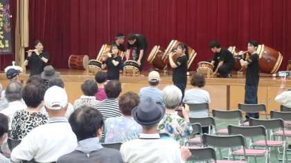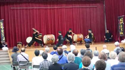 様々な種類の太鼓や篠笛を生かした迫力のある演奏をしてくださいました。日本各地のお祭りなどの太鼓のほか、「ふるさと」や「上を向いて歩こう」など、みなさんがよく知っている曲もあり、一緒に口ずさみながら楽しんでいただきました。