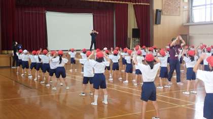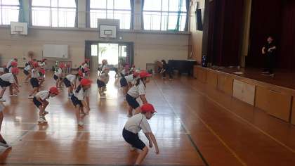 2年生は、体育の学習で運動会に向けた演技の練習をしています。