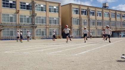 3年生は、体育の学習で50m走のタイム測定をしています。
