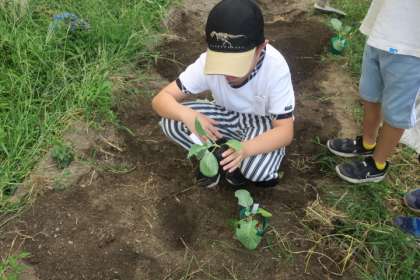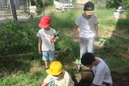 夏野菜も終わりを迎え、次に育てる野菜を考えました。そして今日は、ブロッコリーとキャベツを1人1つずつ植えました。それぞれに名前を付けたので、またお家で聞いてみてくださいね。