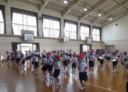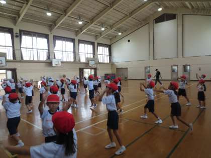 競技の前に、「おまつり どっきゅん!」を踊ります。