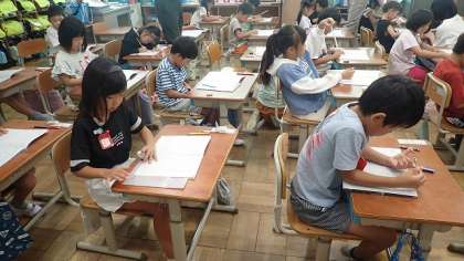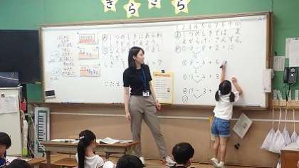 1年生は、算数の「3つのかずのけいさん」の学習をしています。