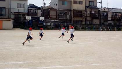 1年生の時よりも力強く50mを走ることができるようになりました。運動会本番では、応援の声を背に受けて、今日よりももっと力いっぱい走り切ってほしいと思います。
