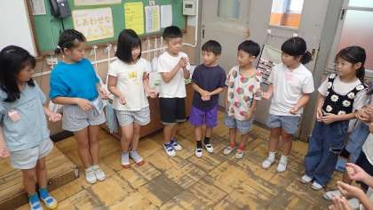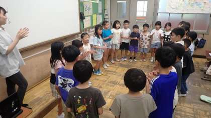 今日は、手拍子と足踏みを交互に打つリズムに挑戦しました。曲に合わせてみんなで一緒にリズム打ちをするだけでなく、みんなで円になって、順番にリズムを回しました。ちょっぴり緊張感を感じながら、拍に乗ってリズム打ちをしていました。
