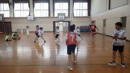 子どもたちが楽しみにしている試合では、必死にボールを追いかけながら楽しく対戦することができました。同じチームになった友達とも声を掛け合っていました。