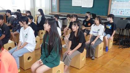 今は、主な旋律と重なる副次的な旋律の練習をがんばっています。どうしても主な旋律の音に引きずられそうになるので、スクールサポーターの先生のピアノの音に合わせて、旋律の動きを確かめながら歌っています。