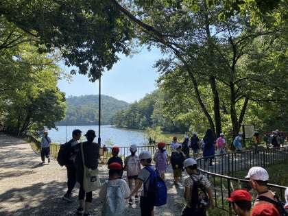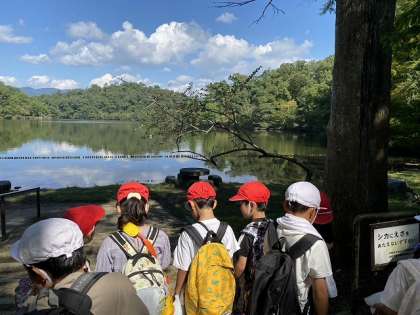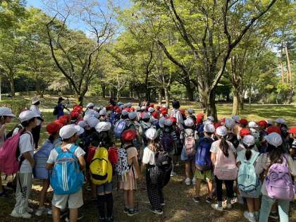 宝が池公園内を散策して、秋見つけをしています。今年は残暑が厳しかったので秋が見つかるか心配していましたが、どんぐりや松ぼっくりをたくさん見つけることができました。