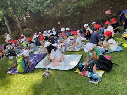 大きな木陰があるので、みんながシートを広げても大丈夫です。たくさんお話をしながら、楽しいお弁当タイムになりました。