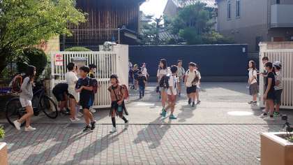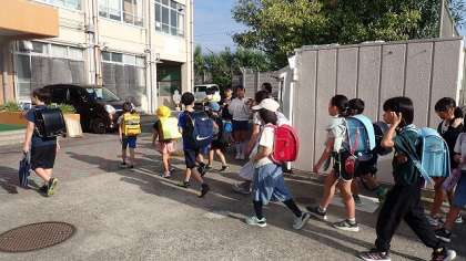 計画委員会の子どもたちが、元気にあいさつをして登校するみんなを迎えています。登校してくる子どもたちも、しっかりあいさつを返すことのできる子がたくさんいました。