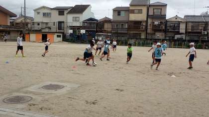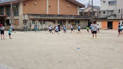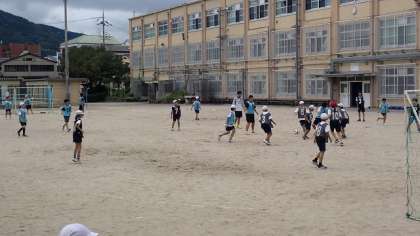 朝から雨が降ったりやんだりの天気でしたが、放課後には雨も止み、運動場が使えるようになりました。サッカー部の子どもたちは、試合形式の練習を楽しんでいました。