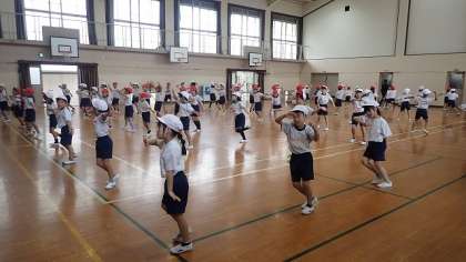 1時間目は運動場で全体の動きの確認をしました。2時間目には体育館に入り、ダンスの振付けの細かい確認をしました。腕や脚の動かし方だけでなく、視線をどこにもっていくかなど、より細かいところまでポイントを確かめました。もうすぐ運動会の本番ですが、どんな演技を見せてくれるのか楽しみです。