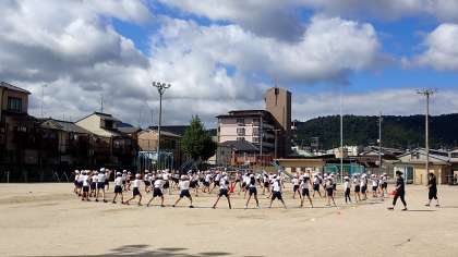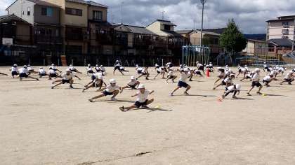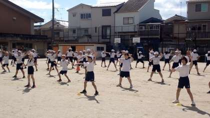運動場からは、「どっこいしょーどっこいしょ!」と元気な掛け声が聞こえてきます。体育館ではしっかり出ていると思った掛け声も、運動場に場所を変えると印象が違ってきます。本番に近い形で練習して、よりよい演技を目指してほしいと思います。今日、みんなのがんばって練習する姿をこっそり見ていた「あの先生」も、みんなの成長に感心されていましたよ!