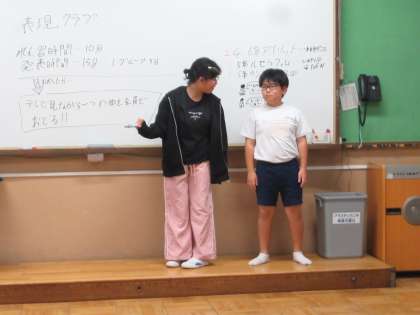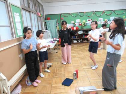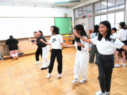表現クラブでは、前半に練習してきたダンスの発表会を行いました。各グループで練習してきた曲をのびのびと発表することができました。