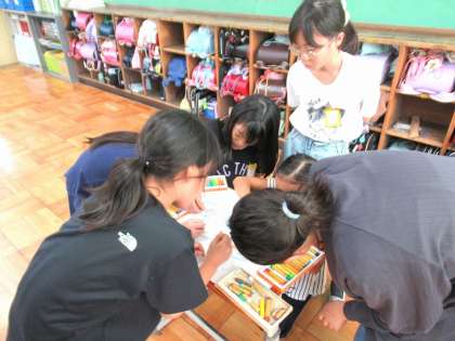児童会で作った運動会のスローガンを、各クラス1字ずつデコレーションしています。4年生たちも、とてもはりきって色塗りをしています。どんな言葉になるのかな?飾られるのが楽しみです。