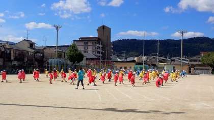 4年生は、昨日からはっぴを着て練習をしています。大きな掛け声と相まって、迫力いっぱいの演技です。本番に向けた準備もばっちりのようです。