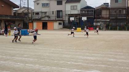 1年生は、運動会の競技の練習をしています。