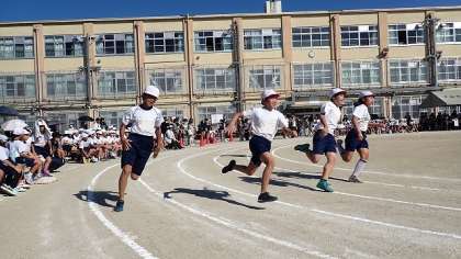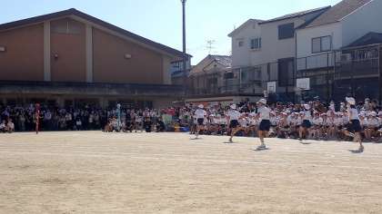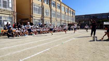 5年生の子どもたちは、4年生の時よりも20m距離が長くなった100mをはじめて走ります。逸る気持ちを抑えてスタートしたら、まずはコーナーまで全力で走ります。コーナーではできるだけスピードを落とさないように気をつけて走り、最後の直線で残りの力を振り絞って、さあ、勝負!