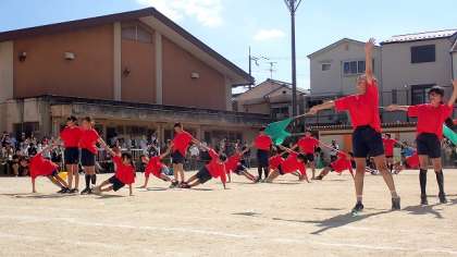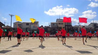 そろいの真っ赤なTシャツを着て、さすが6年生という姿を見せてくれました。最高学年にふさわしいとても素敵な演技でした。