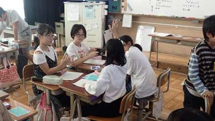 いろいろな鑑賞カードをグループの友達と一緒に見て、どんなことを感じたか、登場人物の気持ちや場面はどんな様子かを話し合っています。作品をなんとなく見るのではなく、主体的に見ることができると、これからの鑑賞の学習もより深いものになりますね。