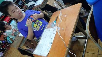 5年生は、図工の「美しく立つはり金」の学習をしています。