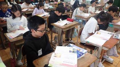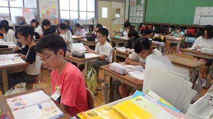 5年生は、道徳の学習をしています。「のりづけされた詩」というお話を読み、他人の詩を自分の詩として提出したことを先生に打ち明けた和江さんの思いを考えることを通して、誠実な行動のよさに気付き、誠実に明るい心で生活しようとすることの大切さについて考えました。