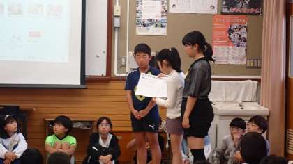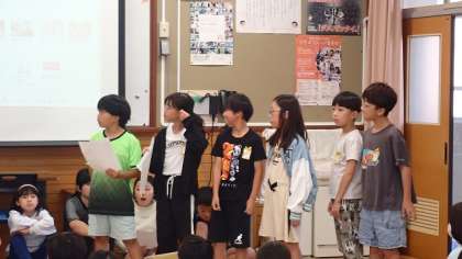 はじめに、これまでの学習を通して祇園祭について考えたことや、これからも祇園祭を続けていくために解決しなければならない課題と、解決に向けたアイデアを発表し、聞いていただきました。